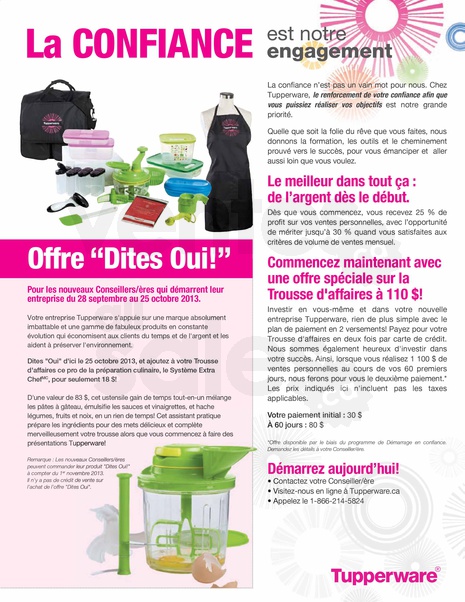 Dites "Oui" d'ici le 25 octobre 2013, et ajoutez à votre Trousse d'affaires ce pro de la préparation culinaire, le Système Extra ChefMC, pour seulement 18 $!