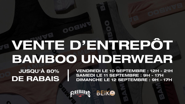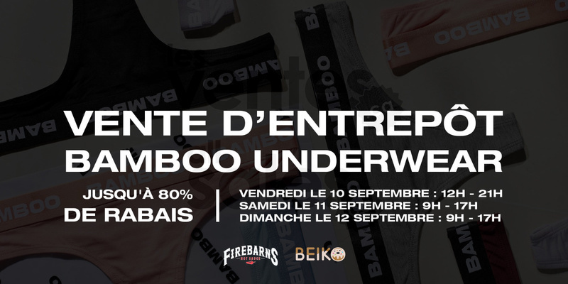 Du 10 au 12 septembre, Bamboo Underwear organise une vente d'entrepôt à Québec. Venez y trouver des strings en vente à 10$, des sous-vêtements sélectionnés à 5$, des hauts sélectionnés à 10$, et plus encore!