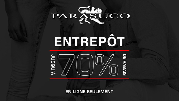 Nouveaux styles ajoutés! Parasuco Outlet en ligne seulement. Jusqu’à 70% de rabais sur les jeans, tops et accessoires pour femme et pour homme. Livraison rapide et gratuite pour tout achat de 98$ et plus retours gratuits en tout temps.