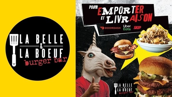 Faites-vous livrer vos burgers et poutines préférés de chez la belle et la boeuf à la maison ou prenez votre commande pour emporter!