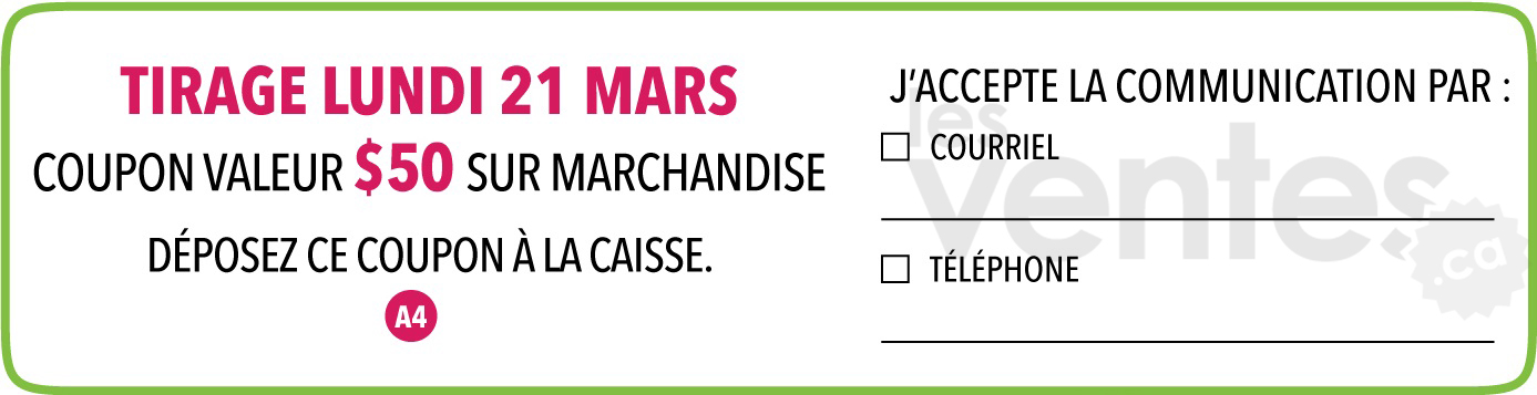 Vente du manufacturier pour 2 jours seulement, les 18 & 19 mars, avec des rabais jusqu'à 80%! Ensembles de douillettes 20$ et+, oreillers standards 2 pour 13$, draps 11$ et+, rideaux 5$ et+, coussins assortis et accessoires de salle de bain 3$ et +.