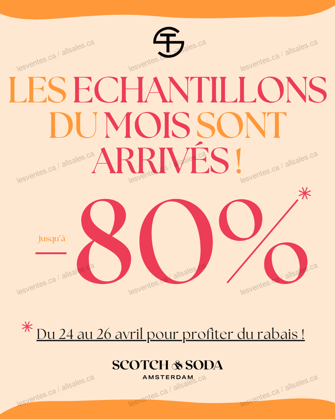 La vente d'échantillons Scotch & Soda du mois vous attends ! Nous avons reçu des nouveaux échantillons, on vous attend pour la vente d’échantillons d'avril avec un rabais exclusif 👉 Jusqu'à -80% !