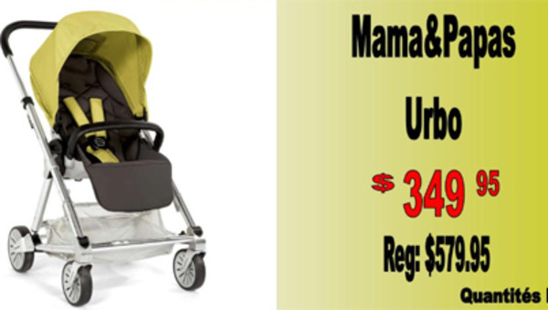 Nouvelle promotion chez Goldtex! Économisez 230$ sur la poussette Urbo de Mamas & Papas! Ne payez que 349,95$ (prix rég. 579,95$)! Les quantités sont limitées. Aussi, un vaste choix de vêtements et accessoires pour bébés et enfants.