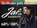 Pour les meilleurs prix en ville en mode masculine, venez à l’entrepôt de Jaf Prêt-à-porter. Des rabais de 60% à 80% sur toute la marchandise en magasin. Du jamais vu : 100% laine – complet à 145 $ ou 2 complets à 250 $. Parkas en duvet à 75 $, etc.