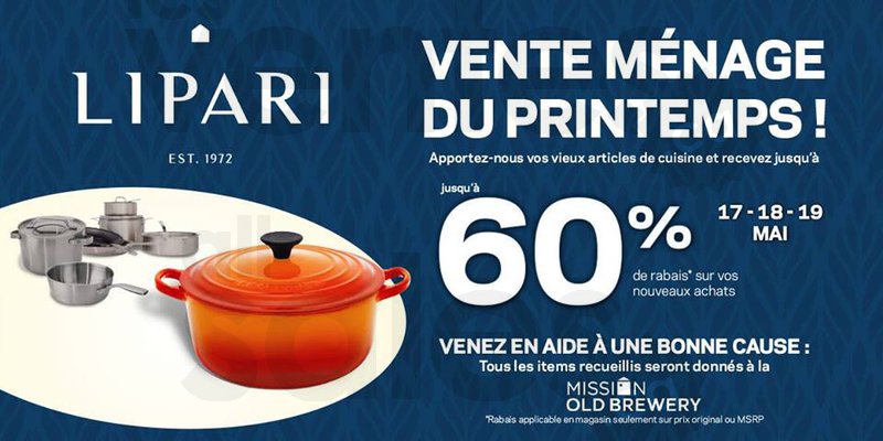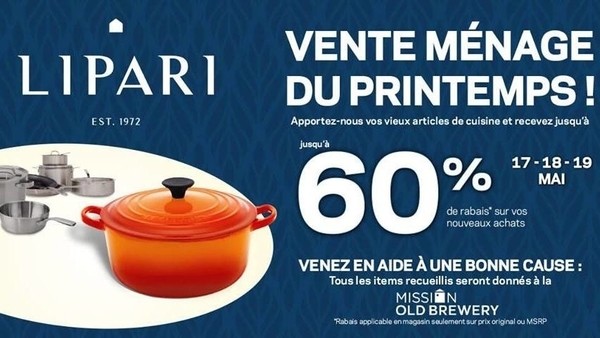 Un événement à ne pas manquer les 17, 18 et 19 mai prochains en magasin! Emmenez-nous vos vieux chaudrons, poêlons, etc. et obtenez un rabais allant jusqu'à 60% sur vos nouveaux achats!