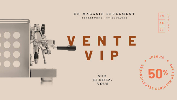 Du 29 au 31 octobre prochain, participez à la 𝙑𝙀𝙉𝙏𝙀 𝙑𝙄𝙋 de Torréfactorie! Obtenez jusqu'à 50% de rabais sur nos machines à café sélectionnées en plus de 10% sur les accessoires et 10% sur les moulins sélectionnés!