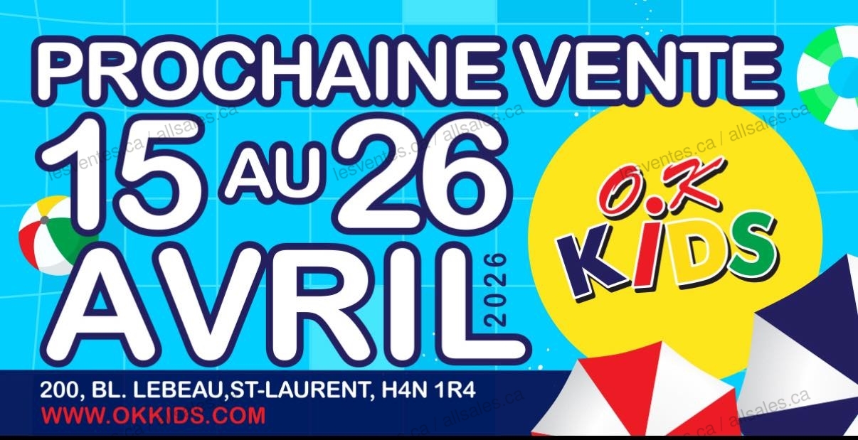 La plus grande vente de vêtements pour enfants du Québec est de retour du 15 au 26 avril 2026! Venez profiter d’une immense sélection de vêtements pour enfants 0-16 ans avec des rabais exceptionnels! Beaucoup de marques européennes.