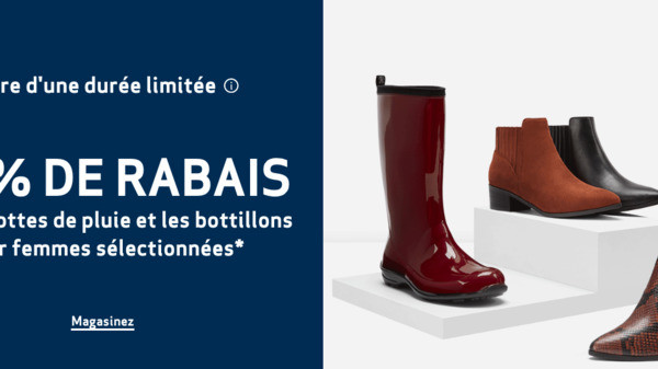 Ne manquez pas l'incroyable promotion de GLOBOShoes! Économisez un rabais de 25% sur toutes les bottes de pluie et bottillons pour femmes sélectionnées!