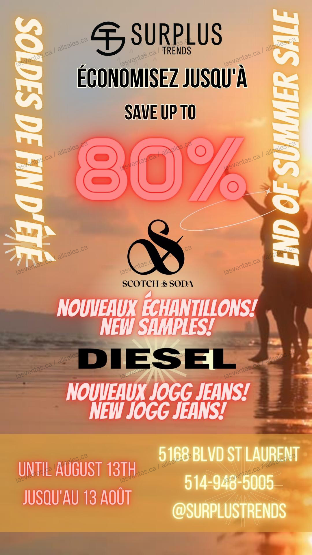 Les soldes de fin d'été sont en cours chez Surplus Trends jusqu'au 13 août! Économisez jusqu'à 80% sur les vêtements pour hommes et femmes de marques telles que Scotch & Soda, Diesel, G-Star Raw et plusieurs autres.
