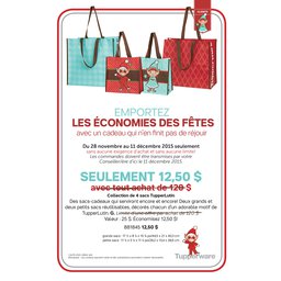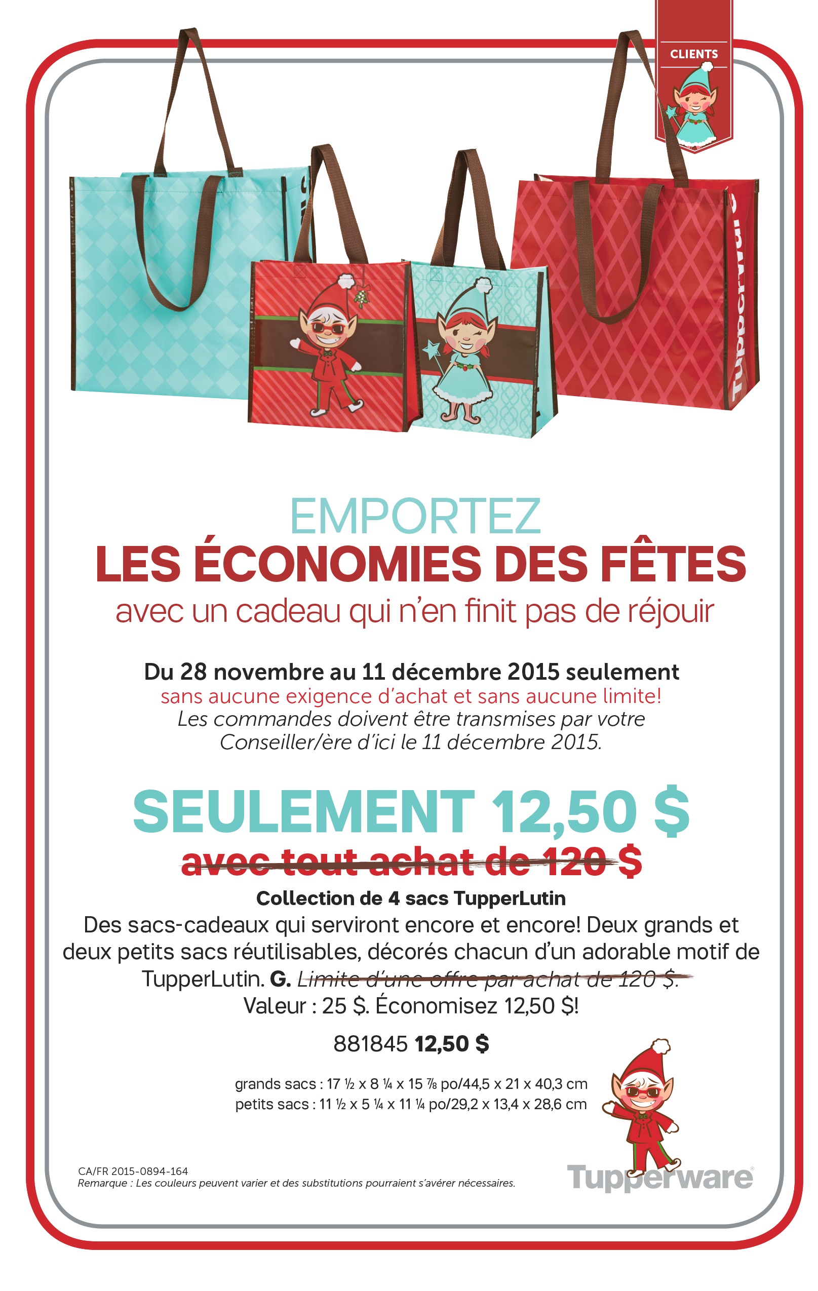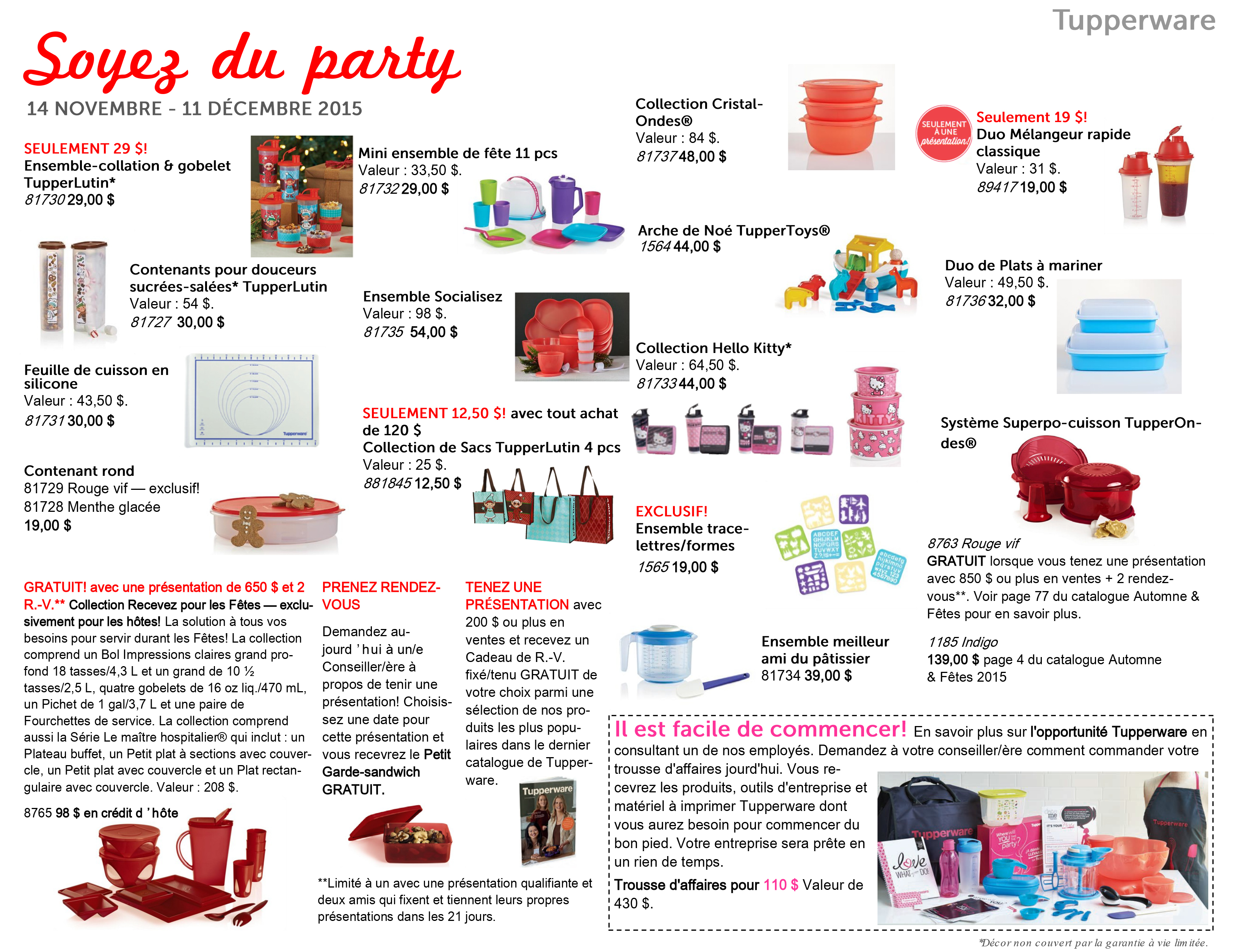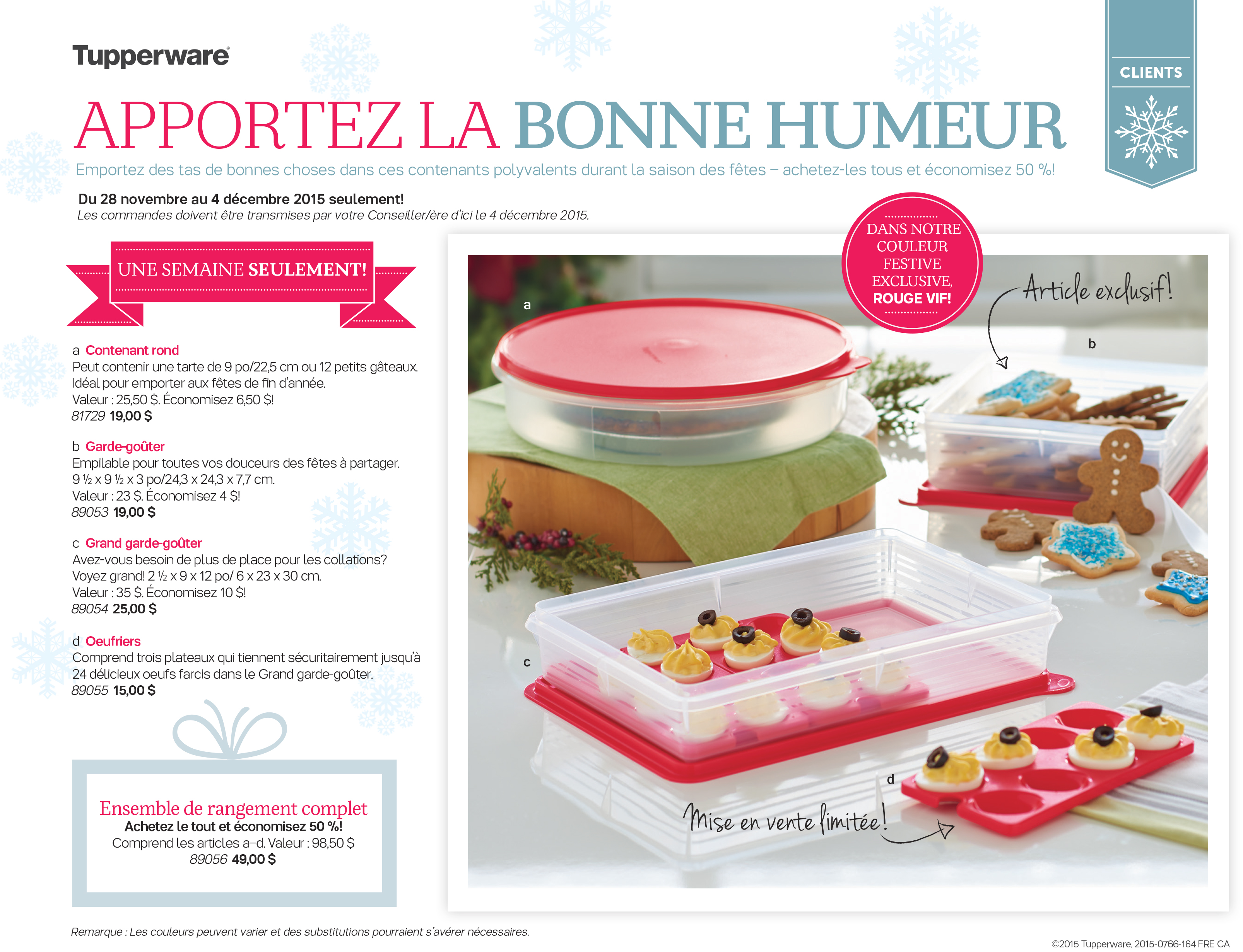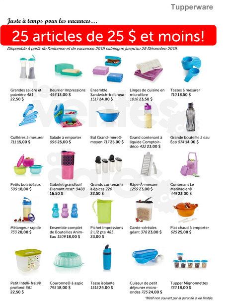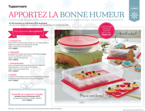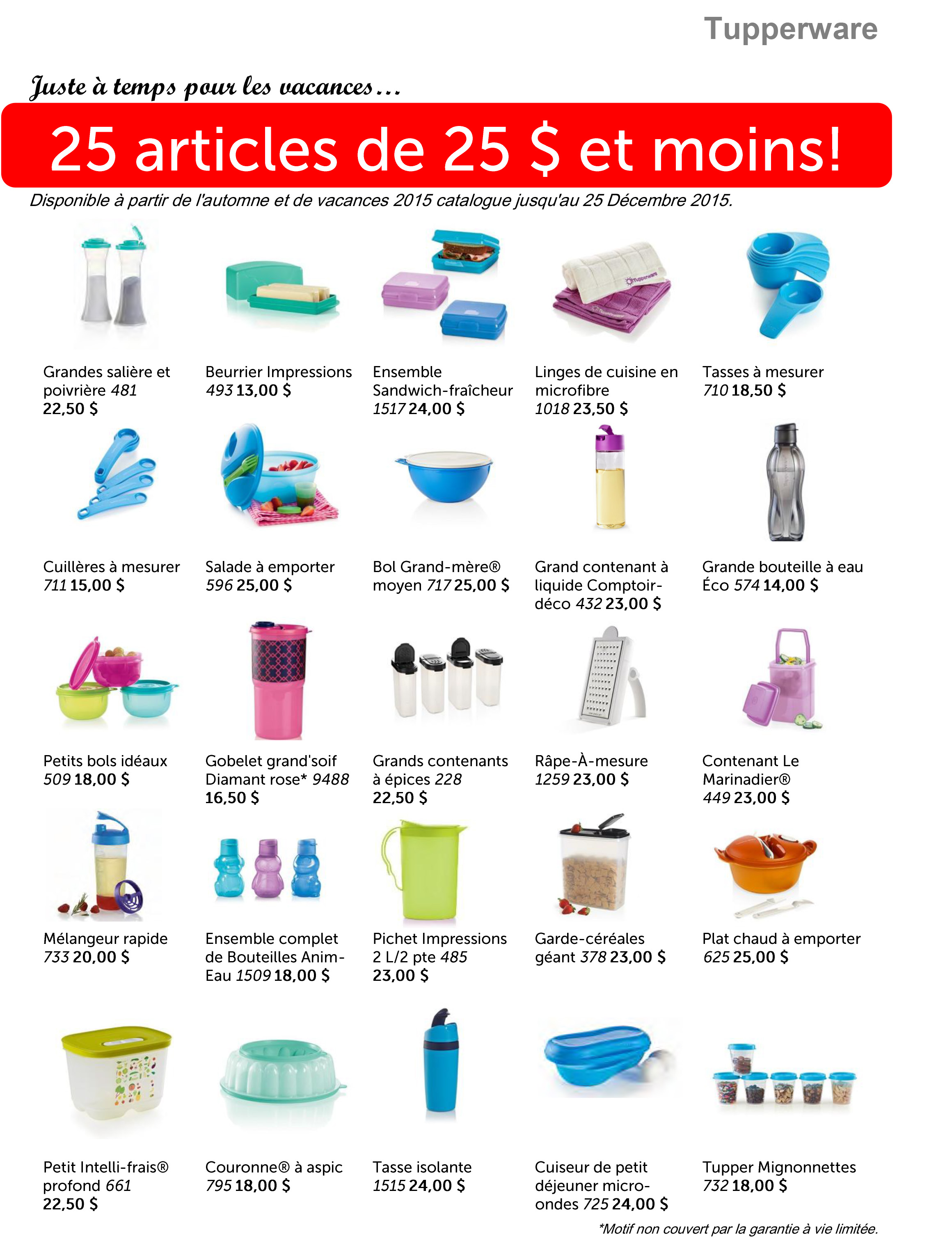 La meilleure offre jamais vue! Ouvrez votre compte Tupperware et recevez jusqu’à 417$ de modulaires pour seulement 60$. Aussi, juste à temps pour les Fêtes: 25 articles 25$ et moins. Ne manquez pas toutes les promotions dans nos brochures en cours!
