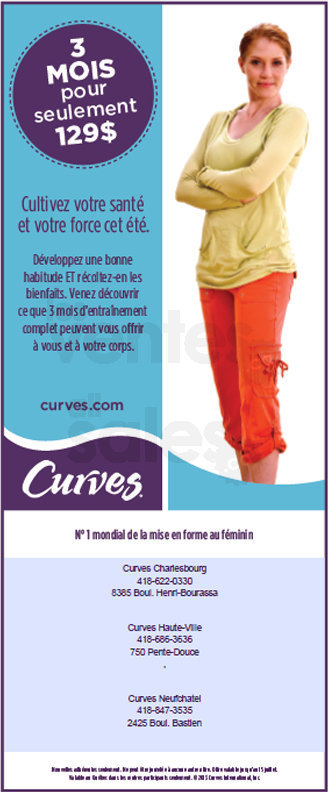 Curves vous offre une promotion estivale de trois mois d'entrainement pour seulement 129$. Venez profiter de cette offre dans un de nos centres participants et récoltez-en les bienfaits. Voilà une promotion qui tombe à point pour l'été !