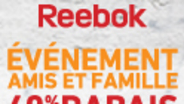 Événement amis et famille Reebok, du 26 au 28 avril. Rabais de 40% dans tous nos magasins. Reebok le sport d’être en forme.
