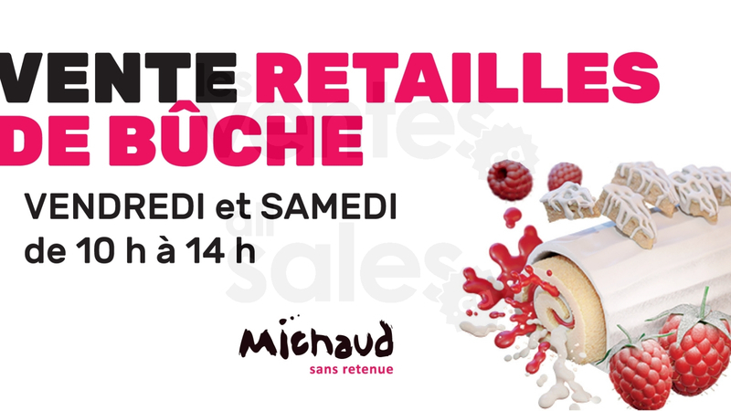 Première vente de l'année! Vous l’attendiez avec impatience, la vente de retailles de bûche fait son grand retour à la Pâtisserie Michaud. Nous aurons aussi des gâteaux avec légères imperfections en liquidation.