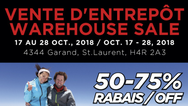 Premium Retail Group vous invite à sa vente d'échantillons automne 2018 du 17 au 28 octobre. Profitez de rabais de 50% à 75% sur The North Face, Helly Hansen, VANS, Oakley, Pajar, Under Armour, Burton, Rossignol, Odlo et Converse.