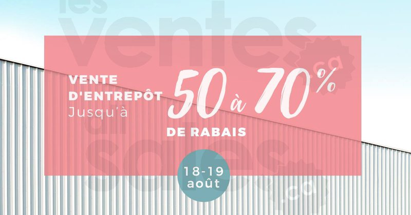Womance fait sa toute première vente d'entrepôt à ses nouveaux bureaux les 18 et 19 août! Venez profiter de rabais allant de 50 à 70%! Chandails, camisoles, robes, boucles d'oreilles, ceintures, casquettes, foulards, etc..!
