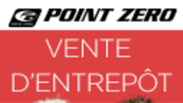 Ne manquez pas la grande vente d’entrepôt automne/hiver Point Zero du 8 au 24 novembre. Jusqu'à 70% de rabais + obtenez un 10% de rabais supplémentaire sur présentation de ce coupon, sur les dernières tendances pour hommes, femmes et enfants!