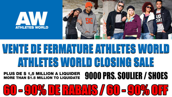 Du 11 au 22 septembre, deux ventes, une seule adresse! Vente d'échantillons automne 2013 The North Face - 50% de rabais. Vente de fermeture Athletes world, rabais de 60% à 90% sur Nike Puma, Adidas, Reebok, Vans, DC et plusieurs autres!