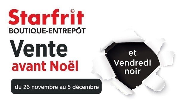 Du 26 novembre au 5 décembre, passez à la boutique-entrepôt Starfrit pour notre vente d’avant-Noël! Profitez de 35% de rabais sur tous les articles en stock à prix régulier. Économies parfaites pour préparer les Fêtes! 🎄 Plus