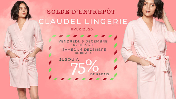 Profitez de nos plus gros rabais cette saison avec 75% de réduction sur tous nos vêtements de nuit! Rejoignez-nous ce vendredi 5 décembre 2025, de midi à 17h, et le samedi 6 décembre 2025, de 8h à 14h! Plus