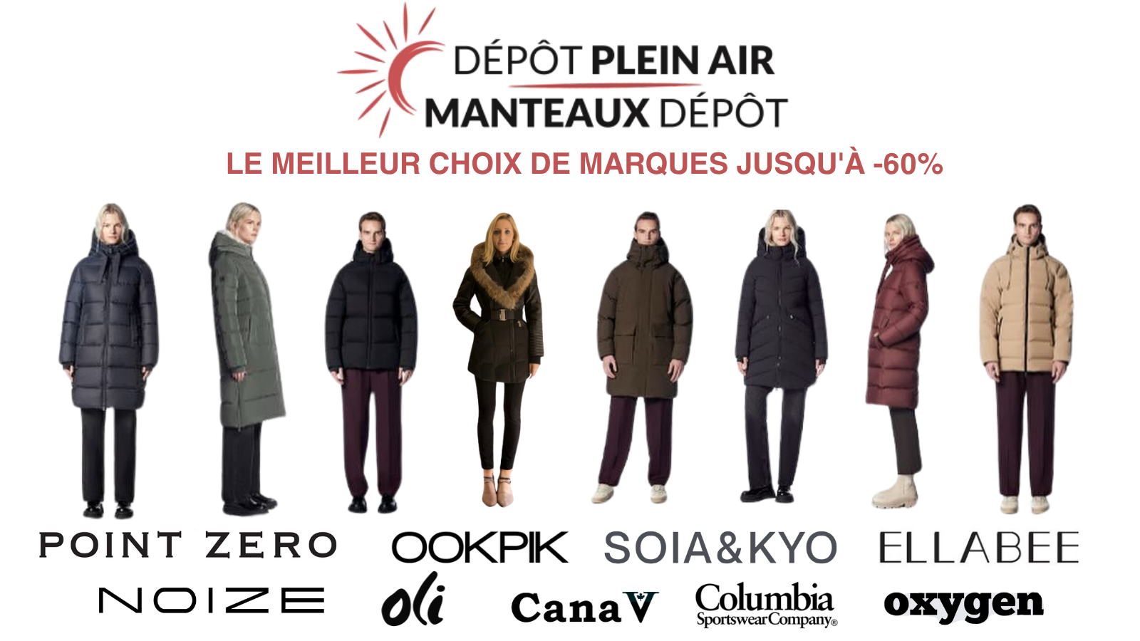 Grande vente d'hiver chez Méga vente! Habits de neige de marques connues pour enfants de 12 mois à 16 ans à partir de 69$! Manteaux hommes et femmes à partir de 69$: Point Zero, Toboggan, Diamond Trail, Tylor Zane Collection, Exploration, et plus. Plus