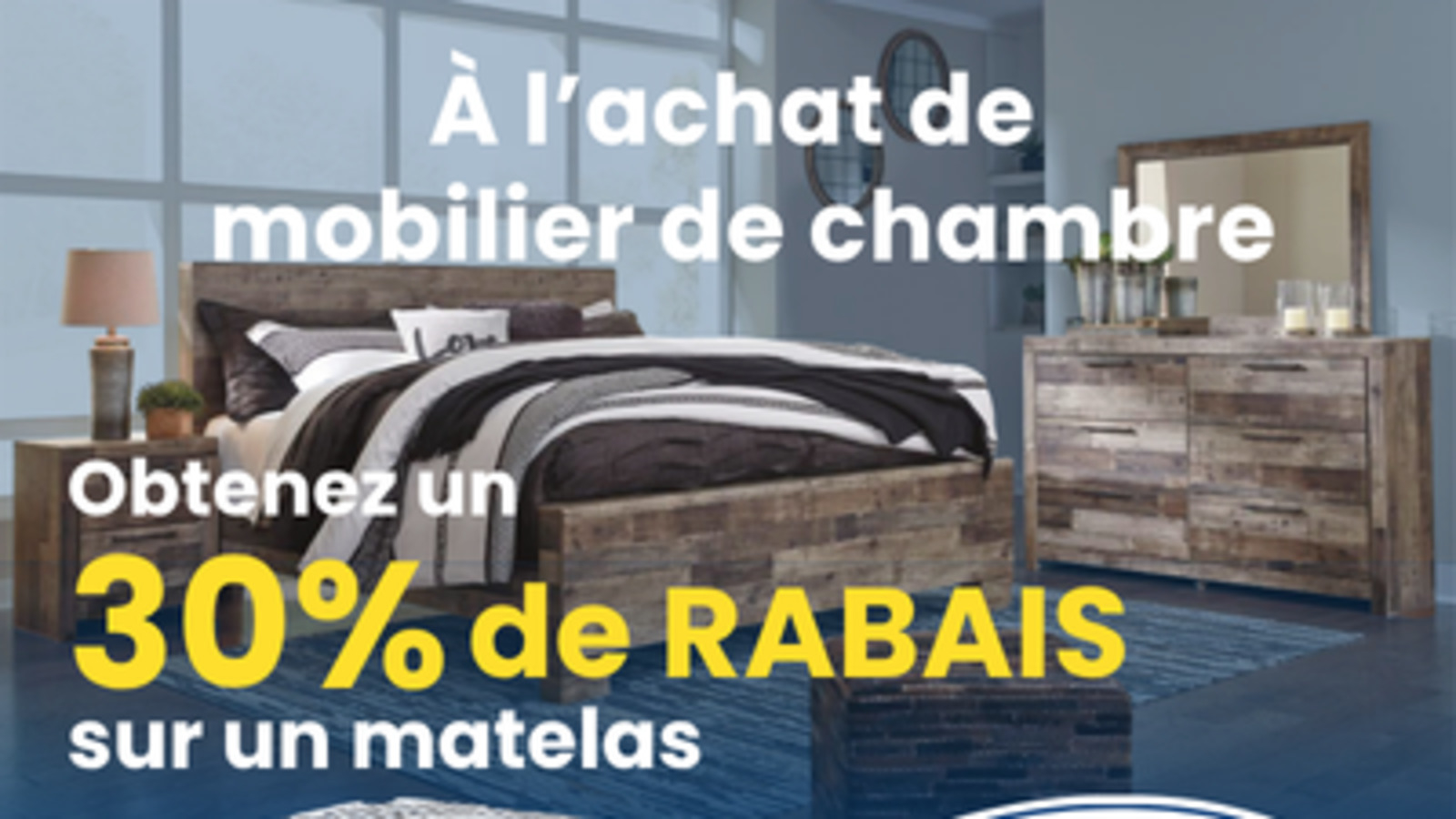 ÉCONOMISEZ 150 $ DE PLUS sur certains modèles du 2 avril au 6 mai 2026! Aussi à l’achat de mobilier de chambre, obtenez 30% de rabais sur un matelas (jusqu'au 1er mai)! Plus
