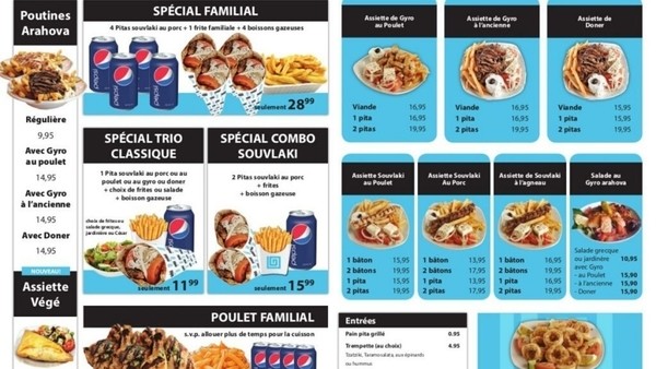 Arahova livre! Savourez de délicieux plats grecques à la maison : gyro, souvlaki, salade, poutine en plus!