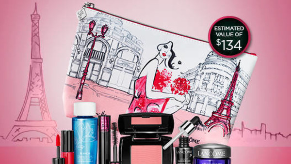Recevez un cadeau gratuit avec tout achat de 65$ ou plus. Rénergie Crème de jour 15 ml, Advanced Génifique 8 ml, Monsieur Big Mascara 2 ml, Bi-Facil Yeux 50 ml, Matte Shaker 378 Magenta, Blush Subtil Rose Fresque 4G et une pochette de maquillage.