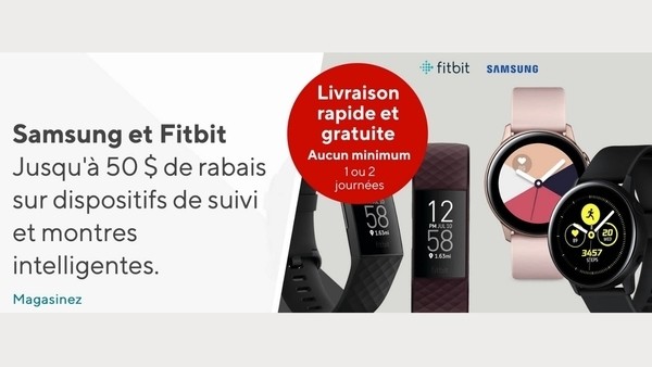 Économisez jusqu'à 50$ de rabais sur les montres intelligentes et dispositifs de suivi Samsung & Fitbit chez Bureau en Gros! Pour un temps limité seulement! Livraison gratuite.