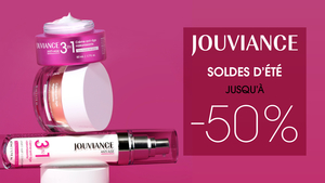 Du 1er au 10 juillet, soldes d’été Jouviance. Tout notre catalogue de soins et de maquillage jusqu’à -50% de rabais. Des formules haute performance pour répondre aux besoins de chaque peau en matière d’hydratation et d’anti-âge.