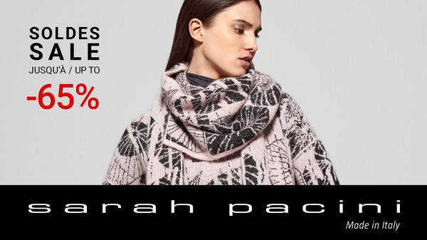 Jusqu’à -65 % sur les pulls, le prêt-à-porter et les accessoires pour femme, fabriqués en Italie. Une offre exceptionnelle à ne pas manquer.
