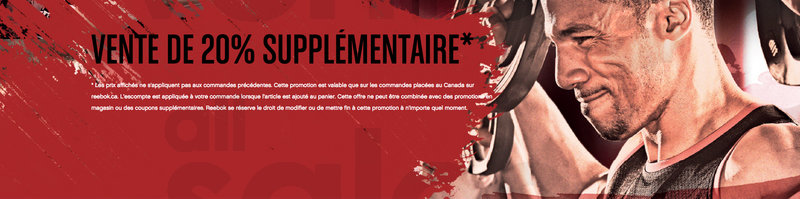 Sur Reebok.ca seulement! Venez profiter de 20% de rabais additionnel* sur notre marchandise déjà soldée.