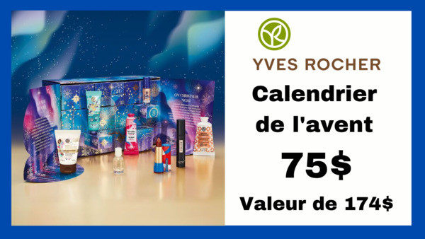 Yves Rocher a lancé son calendrier de l'avent, avec 24 surprises beauté pour seulement 75$! Valeur de 174$. Dépêchez-vous, les quantités sont limitées!
