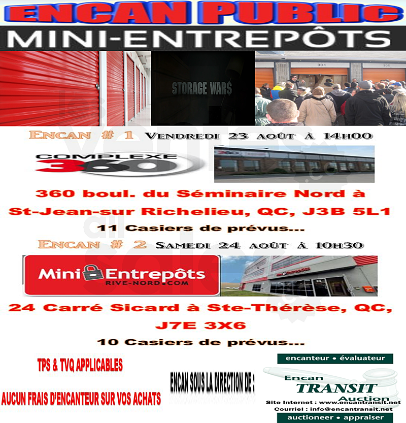 Vous écoutez l’émission de télévision! C’est maintenant à votre tour de venir y participer… Nous procéderons à la vente de 20 casiers d’entreposage en défaut de paiement le vendredi 23 août et samedi 24 août 2019.