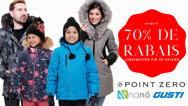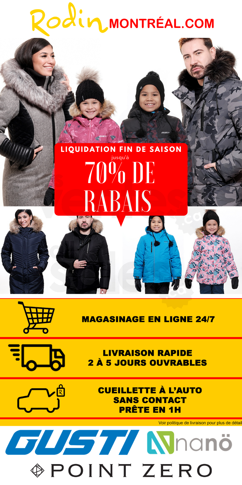 Liquidation fin de saison: Point Zéro, Gusti, Nanö & plus! Meilleur prix uniquement chez Rodin Montréal. Grande vente jusqu'à 70% de rabais sur nos meilleurs manteaux d'hiver, habits de neige et bottes d'hiver pour hommes femmes et enfants.