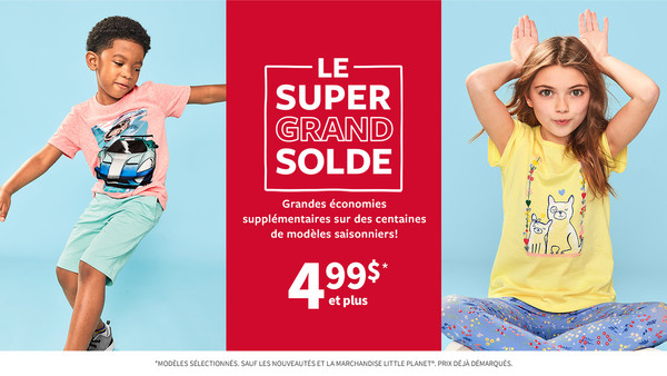 Ne manquez pas le super grand solde Carter's! Grandes économies supplémentaires sur des centaines de modèles pour l'été: hauts, shorts, robes, maillots et plus encore!