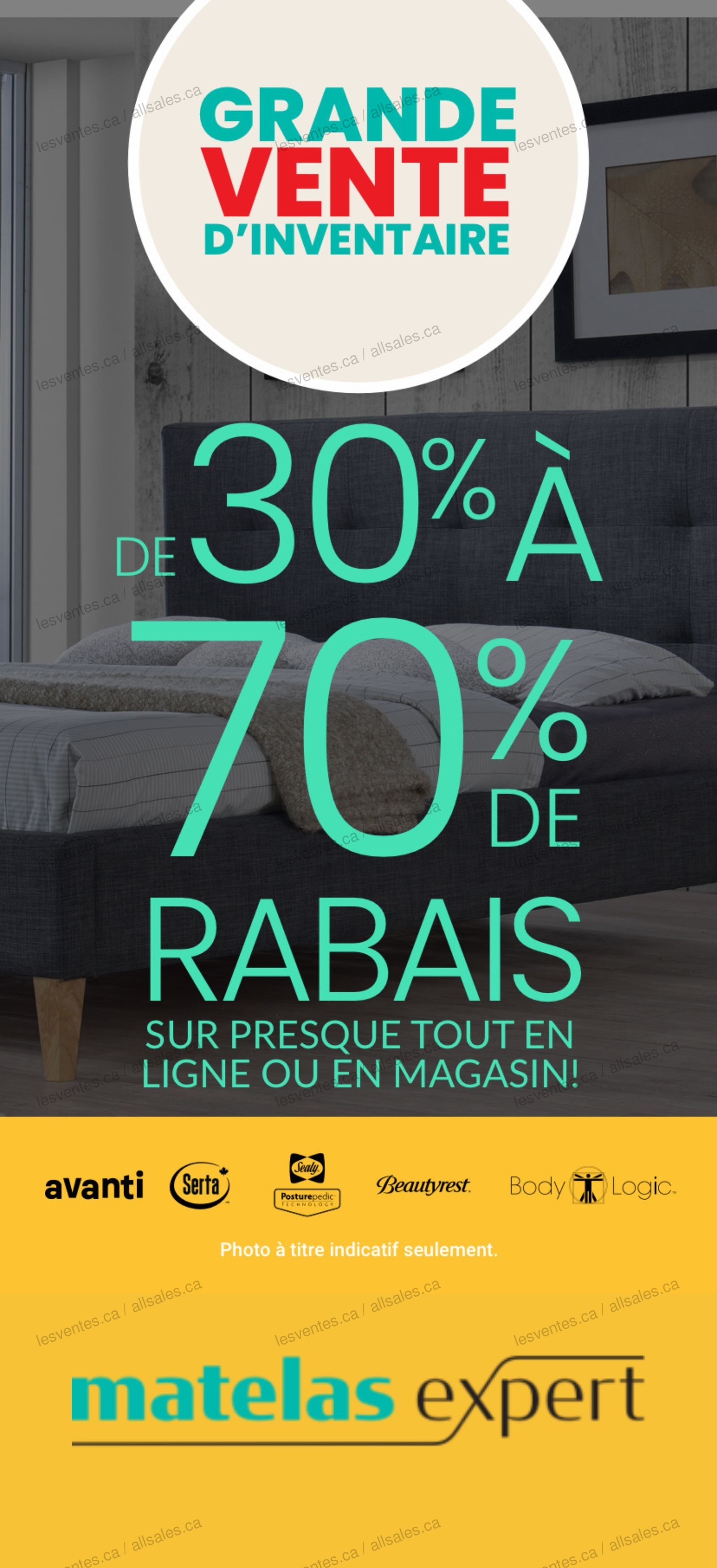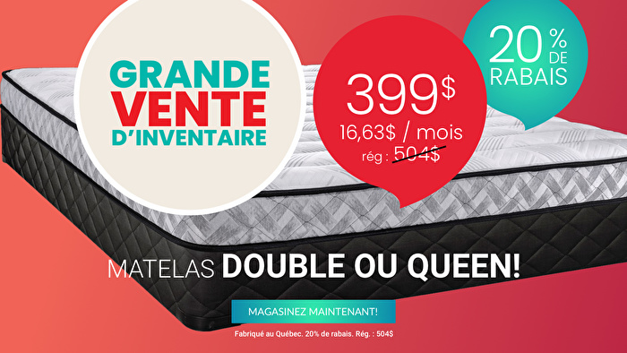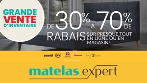 Vente du printemps chez Matelas Expert! Rabais de 30% à 70% sur presque tout en magasin et en ligne. Visitez l'un de nos 4 magasins pour profiter des meilleurs prix sur des matelas et bases de lit de première qualité!