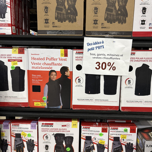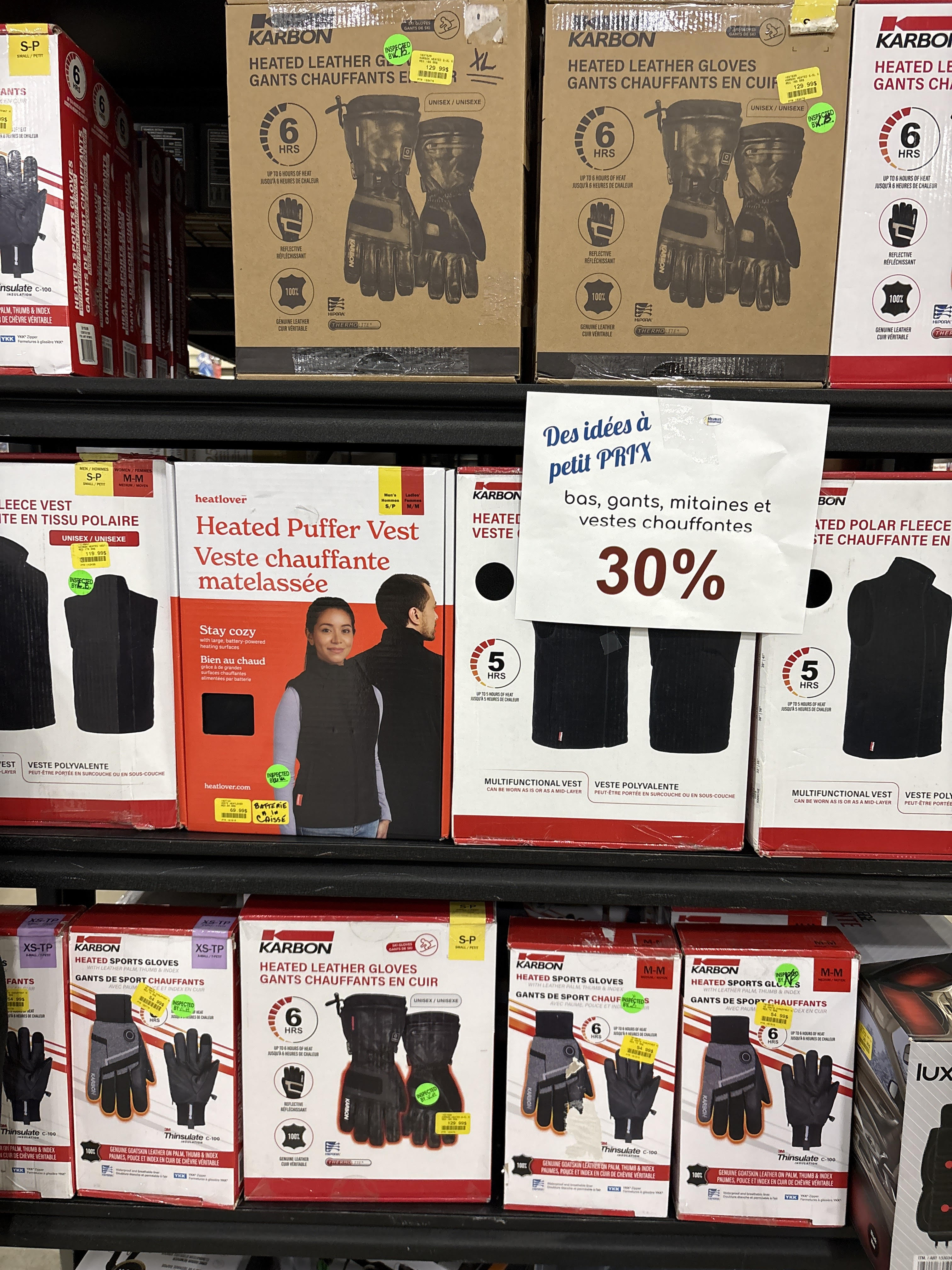 - Gants et vestes chauffantes 30% de rabais