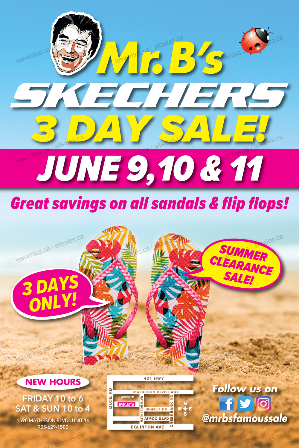 La vente SKECHERS de Mr. B's est de retour du 9 au 11 juin! Des *PRIX PLUS BAS QU'AUPARAVANT*, une vente entièrement réapprovisionnée PLEINE de superbes styles d'été SKECHERS, de lunettes de soleil Foster Grant et de sacs à main de grandes marques!