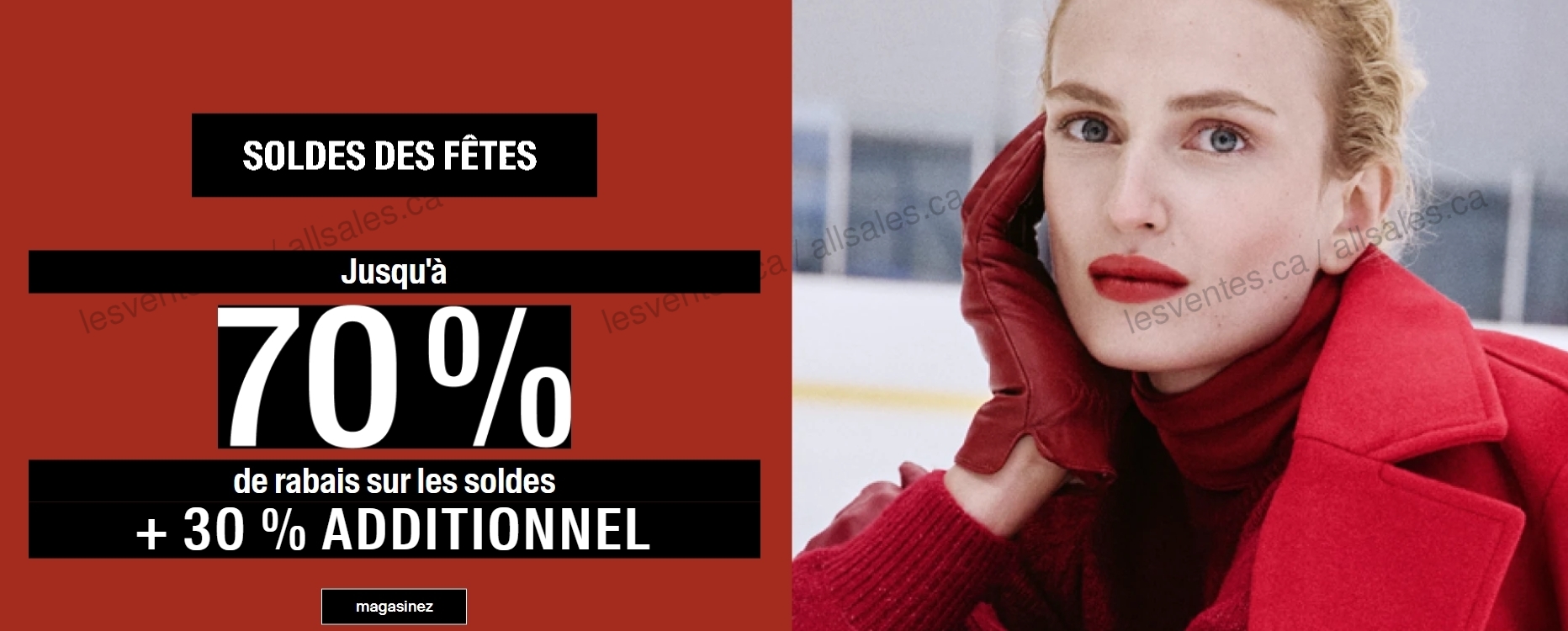 WOW! Les soldes Reitmans vous offrent jusqu'à 70% de rabais + 30% additionnel! Tailles TTP à 3X. Hauts, pantalons, vestons, robes, manteaux, lingerie, accessoires et plus! Pour une durée limitée