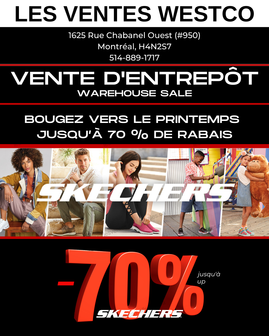 Le printemps arrive — Skechers pour hommes, femmes et enfants vous attendent ! Jusqu’à 70 % de rabais en magasin. Bougez, marchez, profitez du confort pour toute la famille!