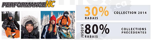 Du 23 au 25 janvier 2014, ce sera "Le Grand Solde Hivernal Performance NC". Nous vous offrirons des rabais extraordinaires sur toutes nos collections de vêtements de motoneige. Des marques telles que Ski-Doo, FXR, CKX et autres à des prix jamais vus.