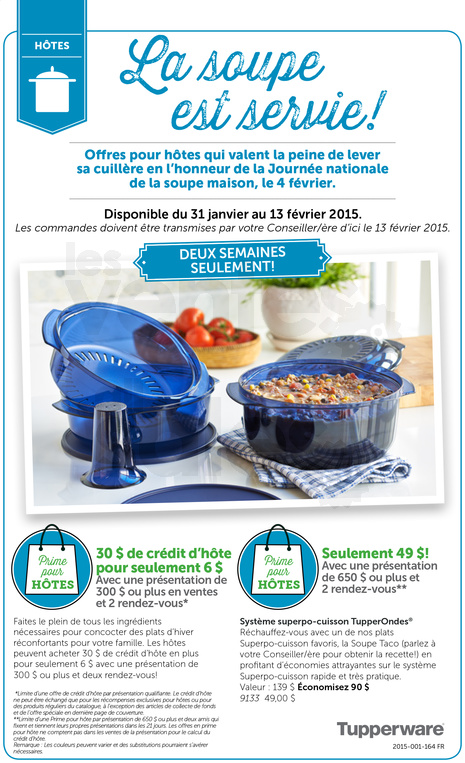 Tout simplement le meilleur sur la planète! Grosse poignée pour gauchers ou droitiers, ne laisse aucun bord tranchant, chaque foyer doit avoir son Ouvre-boîte Tupperware! En spécial à 25$ ainsi que nos autres promotions jusqu’au 13 février seulement.