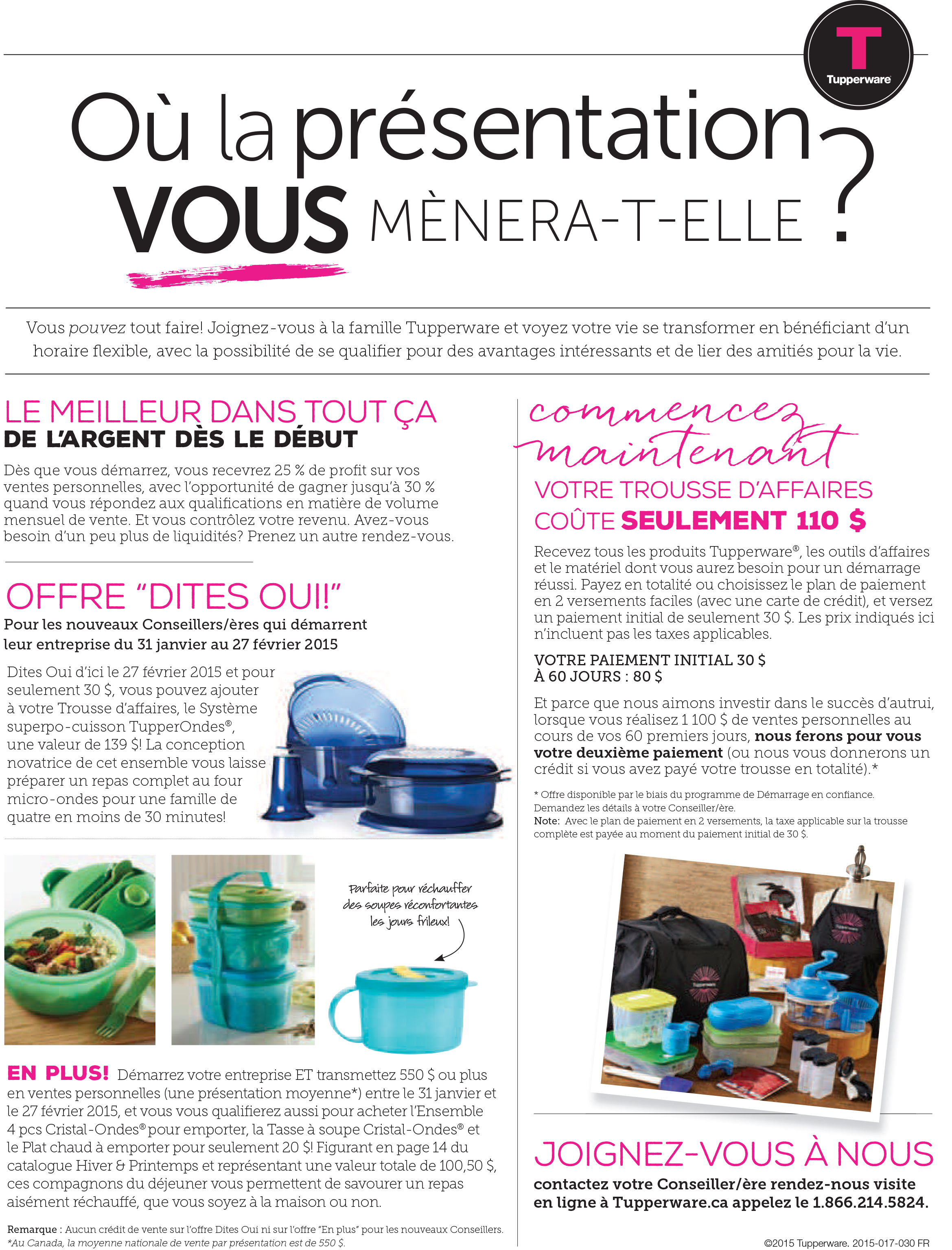 La Trousse et Offre Dites Oui pour nouvelles conseillères de janvier. Où la présentation vous mènera-t-elle? Cliquer ici