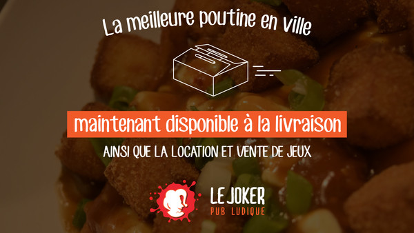 Le Joker Pub Ludique vous offre maintenant de la poutine et des jeux (vente et location) en livraison ou pour emporter! Profitez de leur promo louez 2 jeux + achetez 2 poutines et obtenez un 3e jeu GRATUIT!