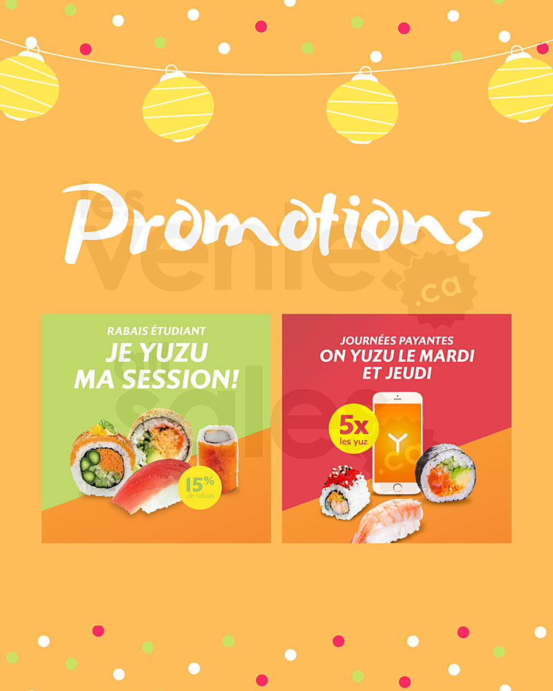 Les étudiants obtiennent 15% de rabais sur leurs commandes de sushis à la carte au Yuzu sushi. Les mardis et jeudis obtenez 5 fois plus de Yuz sur vos commandes.