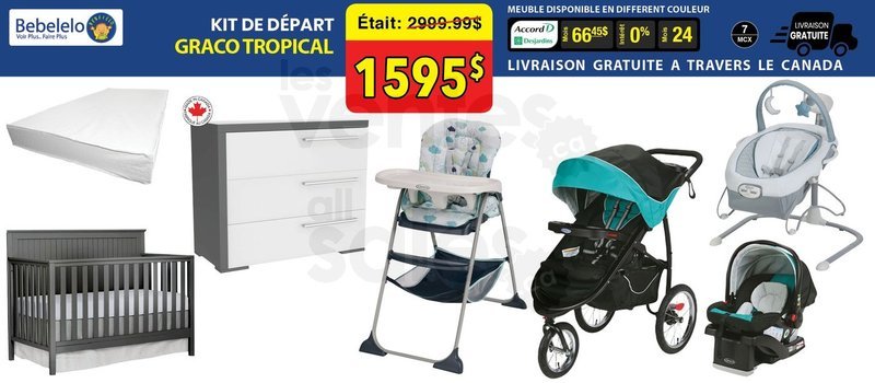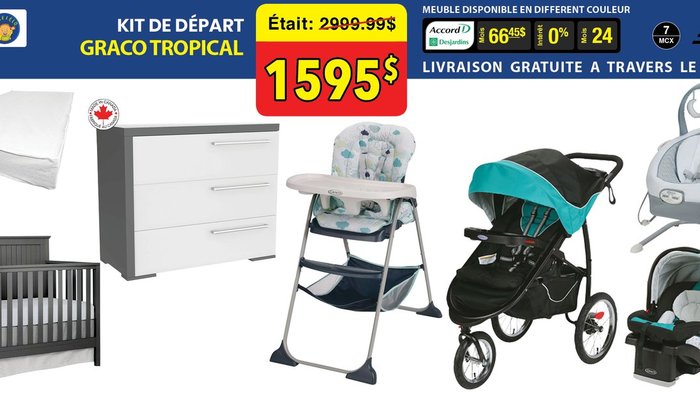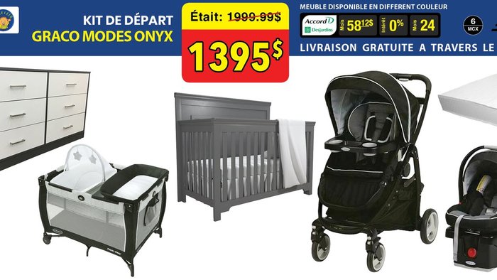 Préparez-vous à l'arrivée de bébé ou meublez la chambre de vos enfants tout en économisant! Profitez de rabais allant jusqu'à 45% sur des kits de départ pour bébé (lit, matelas, poussette, siège auto et plus) ou des ensembles de meubles pour enfants.