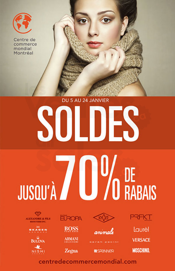 Les soldes de janvier sont en cours jusqu'au 24 janvier au Centre de commerce mondial! Jusqu'à -70% sur les marques haut de gamme mode hommes et femmes : Sarah Pacini, Spanner, Hugo, Armani, Missoni, Laurel. Une vente que vous ne voudrez pas manquer!