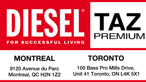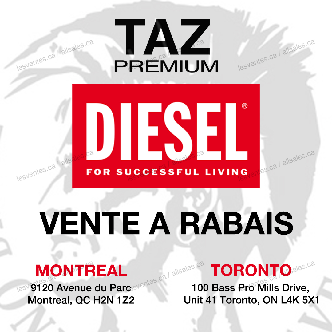Ne manquez pas la vente à rabais DIESEL chez TAZ PREMIUM à Montréal et Toronto. C'est l'occasion idéale de vous procurer des pièces de la marque DIESEL à petit prix!