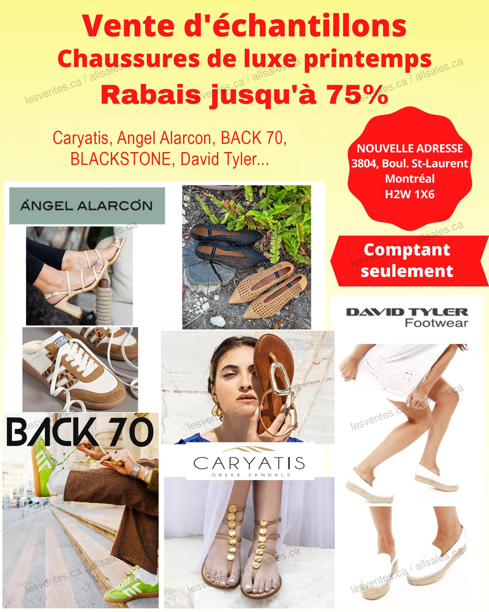 La grande vente d'échantillons de chaussures de luxe MB Agencies est de retour du 25 avril au 3 mai 2026 à Montréal! Jusqu'à -75% pour hommes et femmes : Caryatis, Angel Alarcón, Back70, Blackstone, David Tyler et plus encore!
