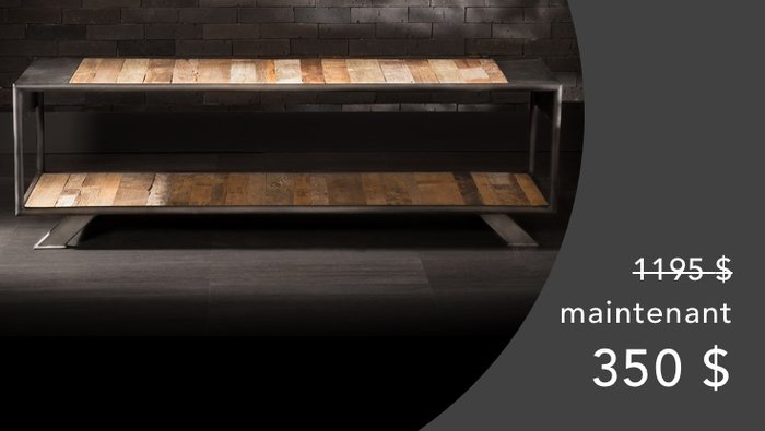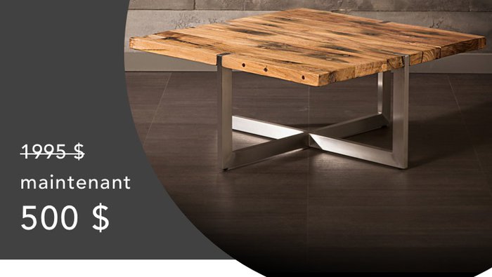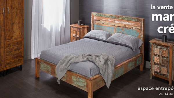 Vente du marché créatif à l'espace entrepôt Artemano à Laval du jeudi le 14 avril au dimanche le 17 avril. Jusqu'à 75% de rabais sur nos nouvelles collections qui peuvent être combinées: lit, table à café, meuble télé, table de chevet, tabouret...